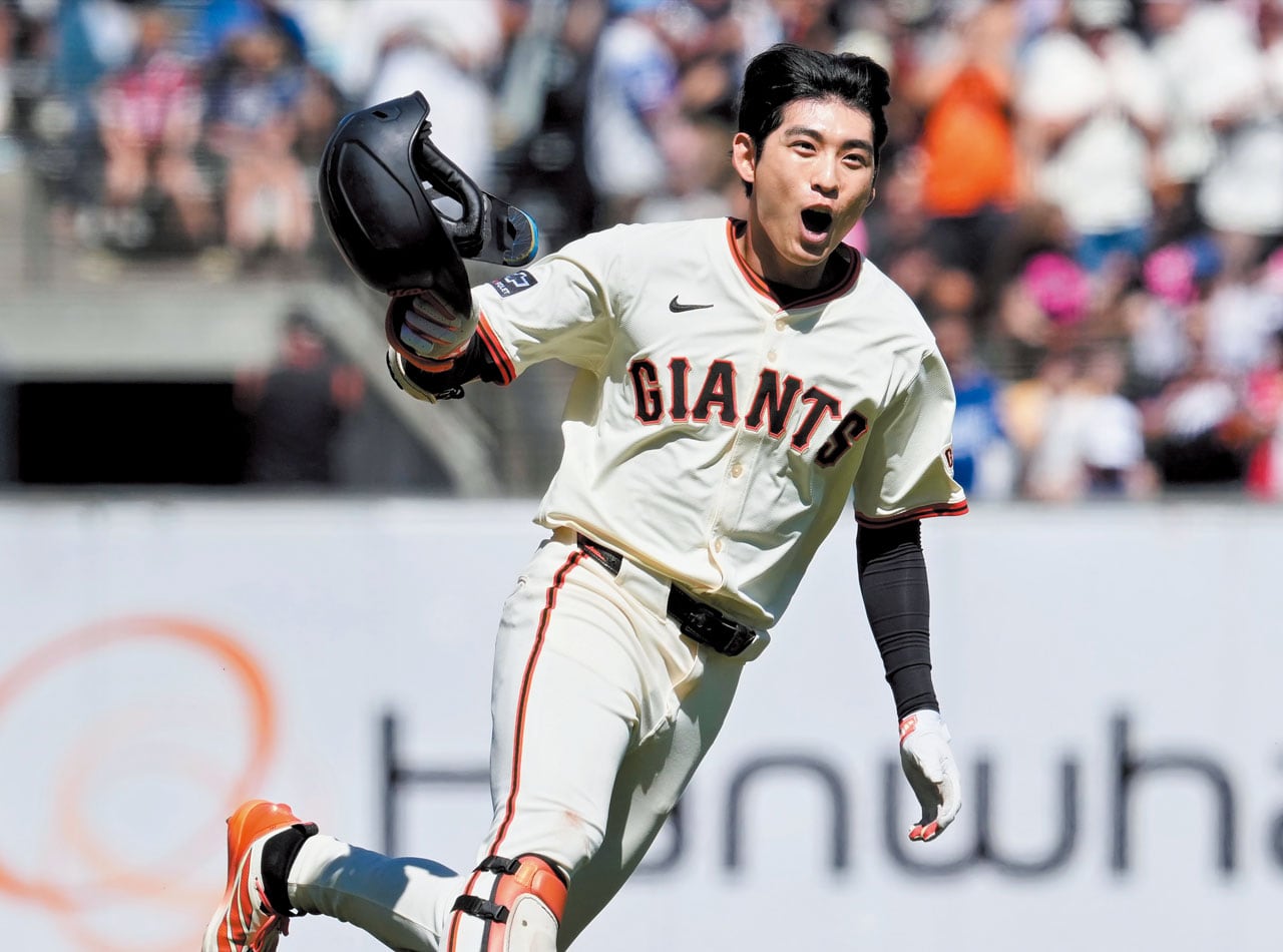 안타를 친 이정후(샌프란시스코 자이언츠)는 흥분을 감추지 못하고 헬멧을 벗어 던졌다. 1루 베이스를 밟고 2루 쪽으로 내달리며 환호했다. 팀 동료들이 더그아웃에서 뛰쳐나와 그를 향해 몰려들었다. 이정후는 술래잡기하듯 전력으로 도망쳤다. 윌리 아다메스에게 붙잡혀 유니폼 상의가 벗겨질 뻔했고, 다른 선수들이 물통을 들고 쫓아오자 이정후는 재빠르게 물벼락을 피했다. 3만2000여 명이 들어찬 관중석에서 “정후 리!”를 연호하는 함성이 터져 나왔다.