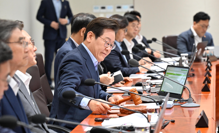이재명 대통령이 29일 서울 용산 대통령실 청사에서 열린 임시 국무회의를 주재하고 있다. 김호영 기자 |