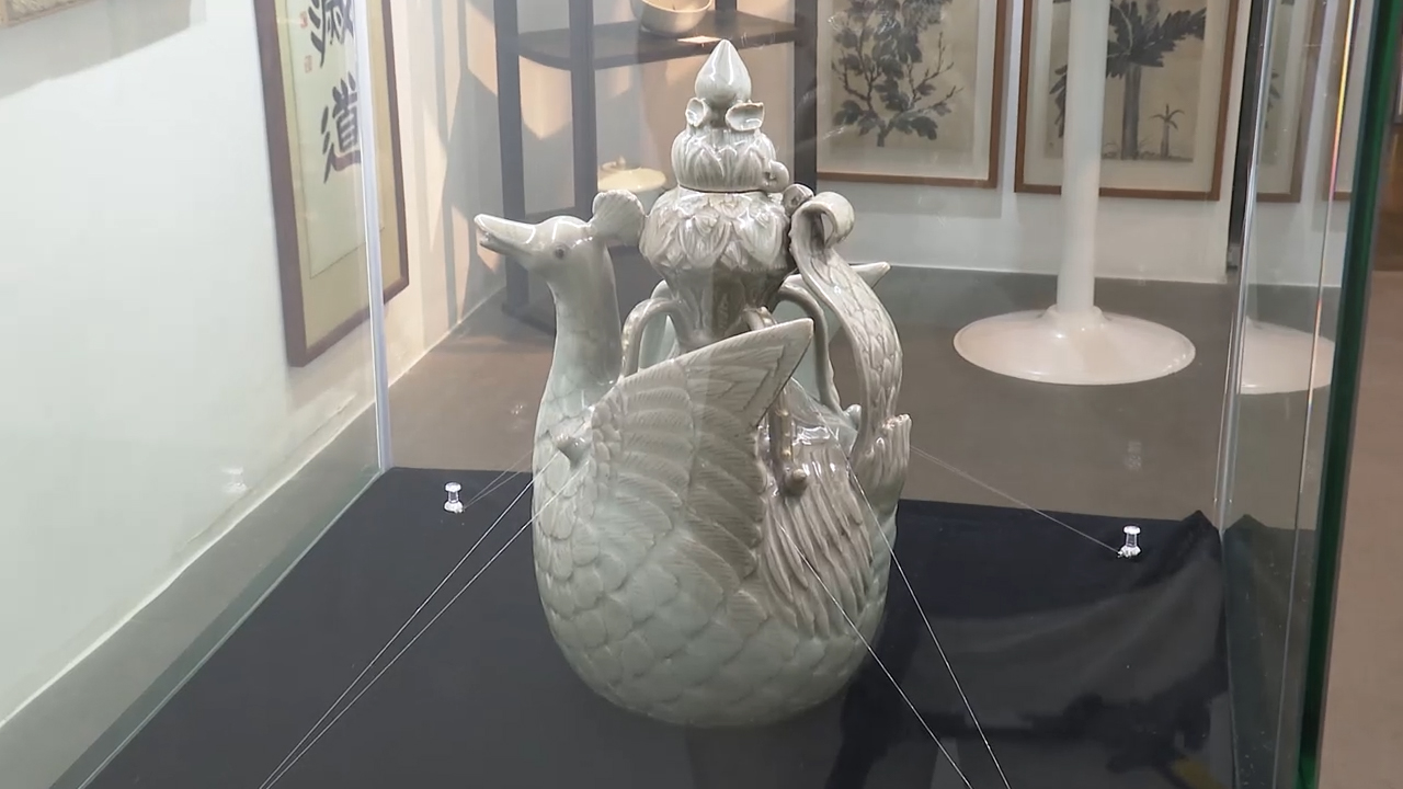 미술품 경매사 캐터옥션은 지난 28일 열린 경매에 출품됐던 '고려청자 양각 연꽃무늬 봉황 모양 주자'가 유찰됐다고 밝혔습니다.