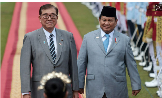 프라보워 대통령의 일본 방문은 작년 10월 취임 이후 처음이다. 이시바 총리는 올해 1월 인도네시아에서 프라보워 대통령과 회담해 방위, 에너지 등 여러 분야에서 협력하기로 했다.