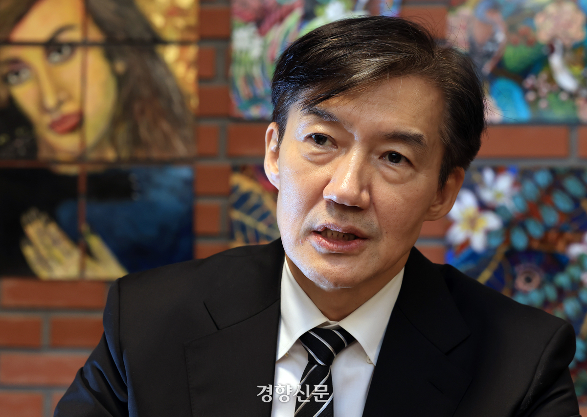 조국 전 조국혁신당 대표가 18일 서울 정동의 한 카페에서 ‘사면 이후의 정치활동’ 등과 관련해 경향신문과 인터뷰를 하고 있다. 서성일 선임기자 |