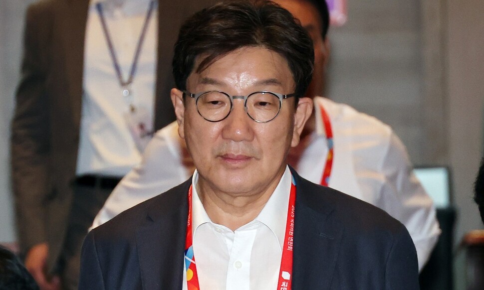 권성동 국민의힘 의원이 28일 인천국제공항공사 항공교육원에서 열린 2025 국민의힘 국회의원 연찬회에 참석하고 있다. 연합뉴스 |