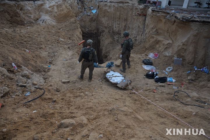 [칸 유니스= 신화/뉴시스]지난 6월 9일 이스라엘군이 가자 남부 칸 유니스 시내 유럽병원의 지하 터널을 폭격으로 파괴한 뒤 하마드 지도자 무함마드 신와르의 시신을 끌어내는 모습. 2025.08.31. |