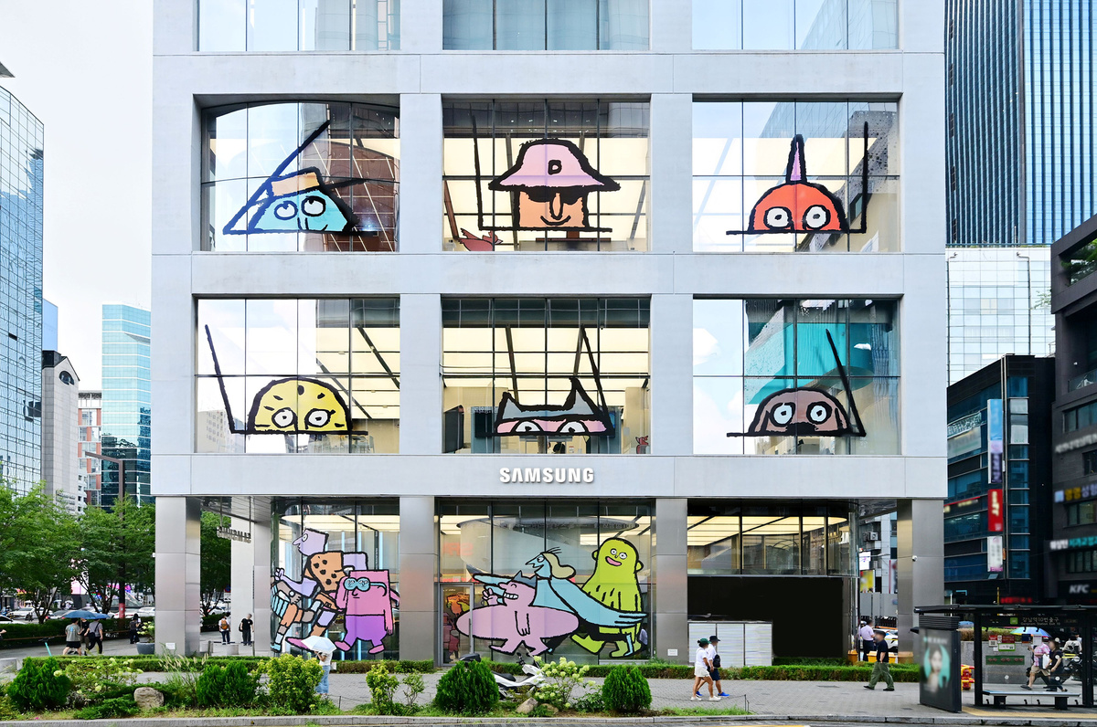 삼성 강남에 새롭게 오픈한 장 줄리앙 종이 인형 모티브의 갤럭시 Z 폴드7∙플립7 전시 체험존 ‘인투 더 갤럭시 언폴더스’ 외부 전경. 삼성전자 제공 |