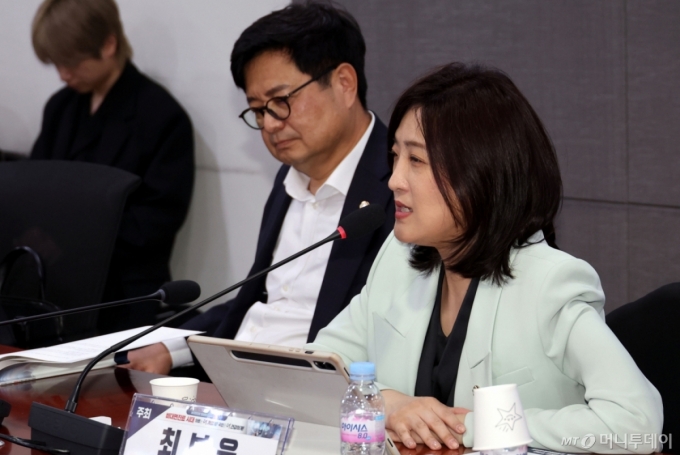 [서울=뉴시스] 조성봉 기자= 최보윤 국민의힘 의원이 21일 오후 서울 여의도 국회 의원회관 간담회의실에서 열린 비대면진료 법제화를 위한 정책토론회에서 발언을 하고 있다. 2025.04.21. suncho21@newsis.com /사진=조성봉 |