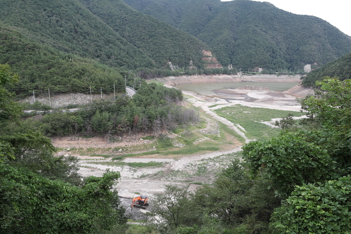 지역 87%의 생활용수를 공급하는 상수원 강릉 오봉저수지가 바짝 말라 있다. [사진제공= 연합뉴스] |