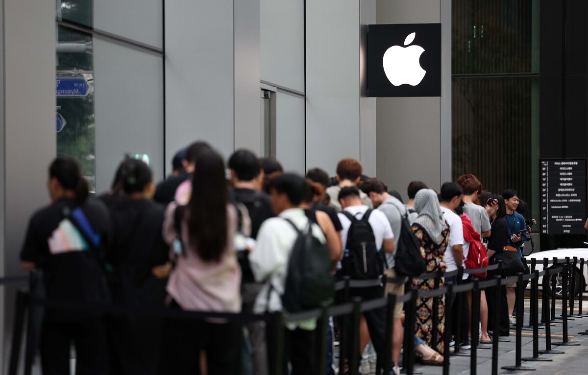 지난해 9월 아이폰16 시리즈 출시 당시 소비자들이 서울 중구 명동 애플스토어에 줄을 서서 대기하고 있다. 뉴시스 |