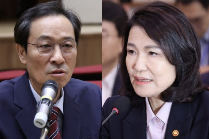 이진숙 방송통신위원장(오른쪽)의 내년 지방선거 대구시장 출마설이 나오자 우상호 대통령실 정무수석이 공개적으로 사퇴를 요구했다. (사진=뉴시스) |
