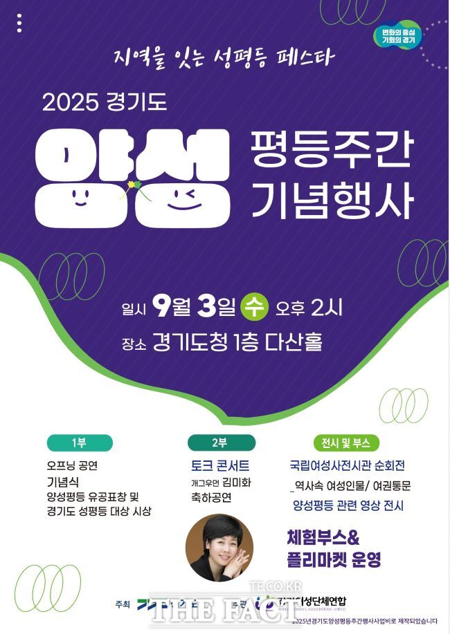 [더팩트ㅣ수원=이승호 기자] 경기도는 3일 오후 2시 도청 광교청사 다산홀에서 '2025 양성평등주간 기념행사'를 연다고 1일 밝혔다.