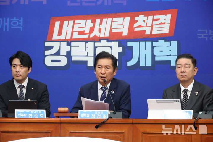 [서울=뉴시스]신재현 한재혁 기자 = 정청래 더불어민주당 대표가 1일 "내란 척결이 반민특위(반민족행위특별조사위원회)처럼 좌절되고 실패할 수 없다"며 김건희·내란 특검 수사 기간을 연장하겠다고 했다.