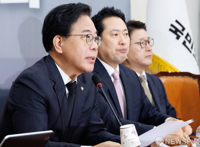[서울=뉴스핌] 윤창빈 기자 = 송언석 국민의힘 원내대표가 1일 오전 서울 여의도 국회에서 열린 최고위원회의에서 모두발언을 하고 있다. 2025.09.01 pangbin@newspim.com |
