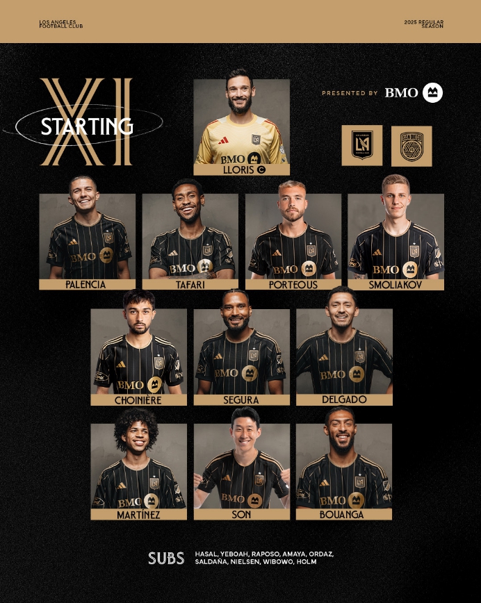 로스앤젤레스(LA) FC는 구단 누리소통망을 통해 1일 오전 11시 45분(이하 한국시간) 미국 캘리포니아주 LA의 BMO 스타디움에서 열리는 샌디에이고 FC와 2025 미국 메이저리그사커(MLS) 홈 26라운드에 나설 선발 명단을 발표했다.