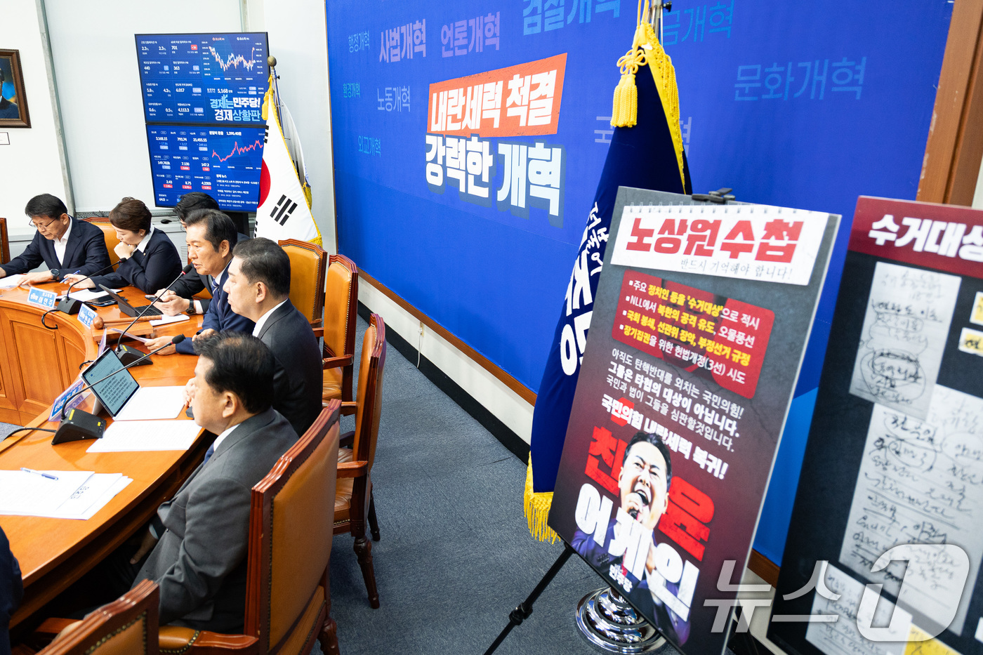 정 대표는 최고위 회의장에서 '노상원 수첩 반드시 기억해야 한다' 등이 적힌 패널도 소개했다. 그는 "패널은 당 대표실 복도에 상시 게시해 놓고 전시하겠다. 노상원 수첩은 무고한 시민을 참혹하고 잔인하게 살해하려고 했던 계획"이라고 말했다.