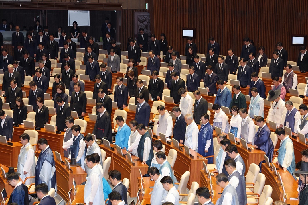 이날 우 의장을 비롯해 민주당 의원 등 국회의원 다수는 한복을 갖춰 입었다. 일부 의원들은 갓을 쓰거나 최근 세계적으로 인기를 끌고 있는 넷플릭스 영화 ‘케이팝 데몬 헌터스’ 속 저승사자 의복을 입어 눈길을 끌었다. 개혁신당 이준석 대표도 한복을 입고 개회식에 참석했다.