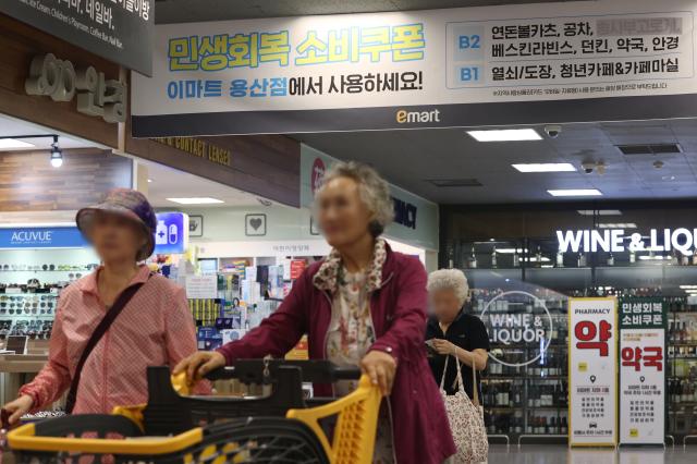 지난 7월 28일 서울의 한 이마트에 민생회복 소비쿠폰 관련 안내문이 내걸려 있다.[사진=연합뉴스] |