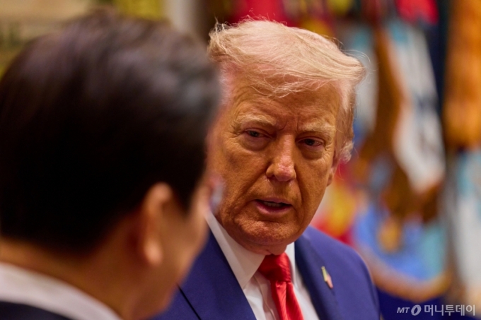 이재명 대통령이 지난달 25일(현지시간) 미국 워싱턴DC 백악관에서 열린 한미 정상회담에서 도널드 트럼프 미국 대통령의 발언을 듣고 있다. / 사진=뉴스1 |