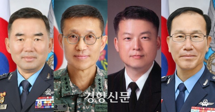 진영승 합동참모의장 내정자(왼쪽부터), 김규하 육군참모총장 내정자, 강동길 해군참모총장 내정자, 손석락 공군참모총장 내정자. 국방부 제공 |