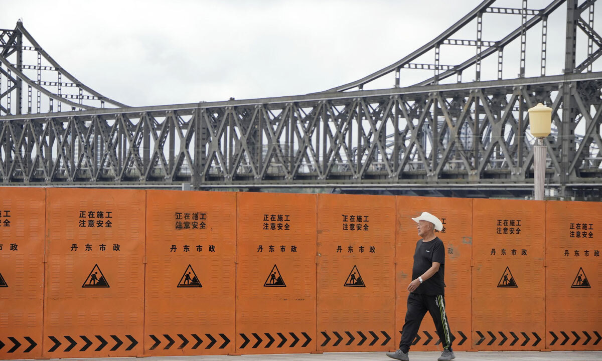 중국 '항일전쟁 승리' 80주년 기념 열병식 참석차 6년여 만의 중국 방문을 예고한 김정은 북한 국무위원장이 1일 평양을 출발한 것으로 알려진 가운데 중국 단둥 압록강단교 주변에 시선과 접근을 차단하기 위한 펜스가 설치돼 있다. 연합뉴스 |