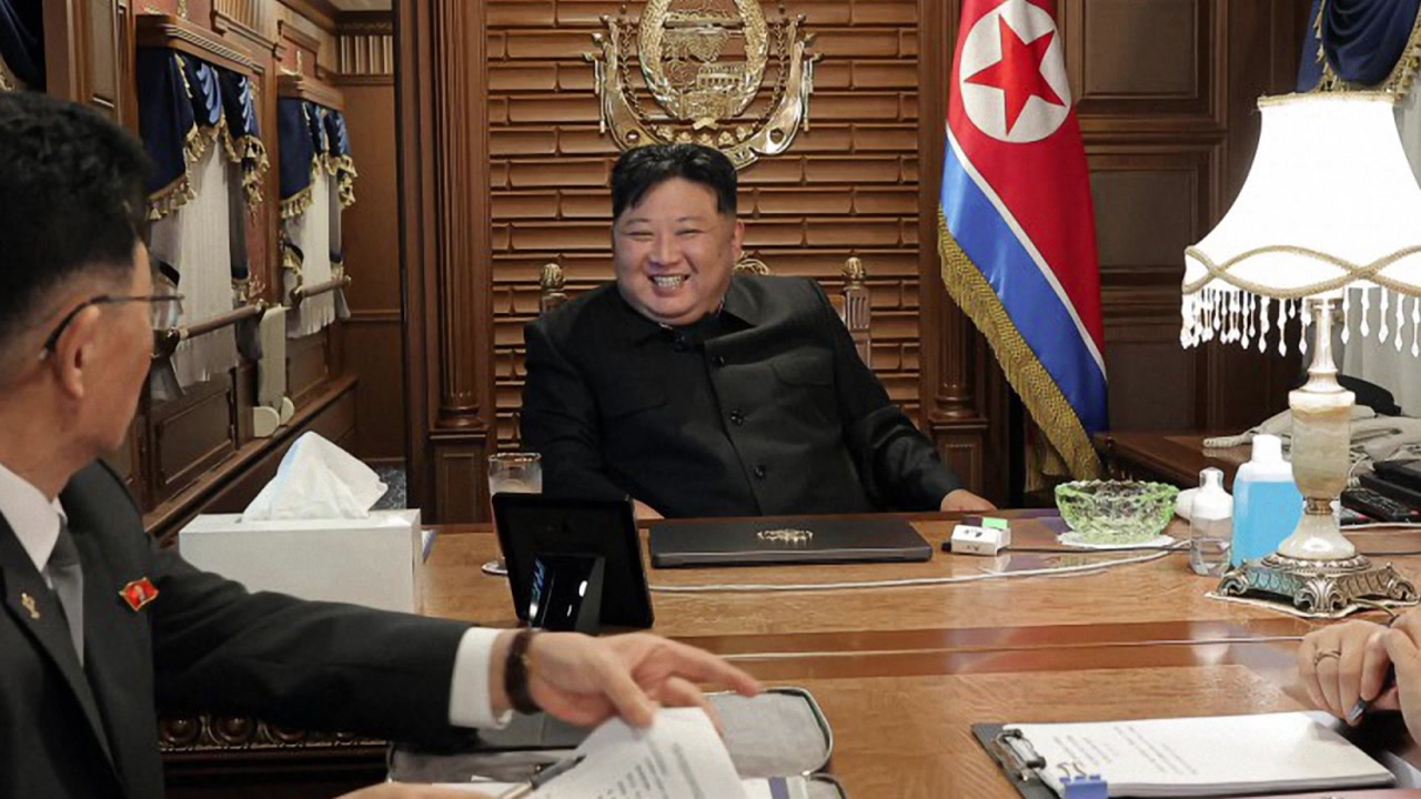 전용 열차 내부로 보이는 실내에서 북한 김정은 국무위원장이 밝게 웃고 있습니다.