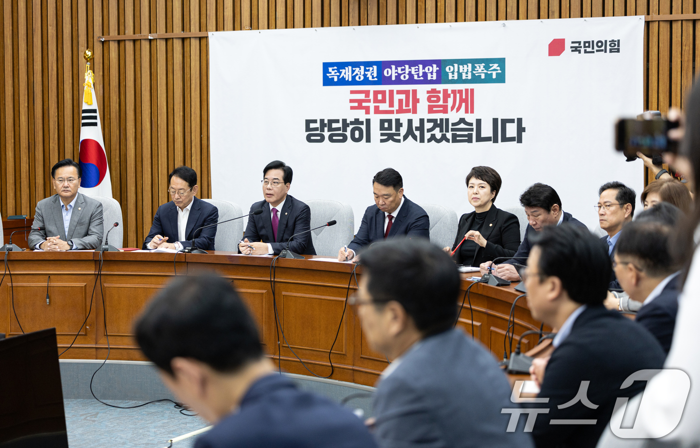 송언석 국민의힘 원내대표가 2일 서울 여의도 국회에서 열린 원내대책회의에서 모두발언하고 있다. 2025.9.2/뉴스1 ⓒ News1 이승배 기자 |