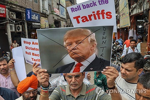 미국 50% 관세 적용에 반대하는 인도인들 |