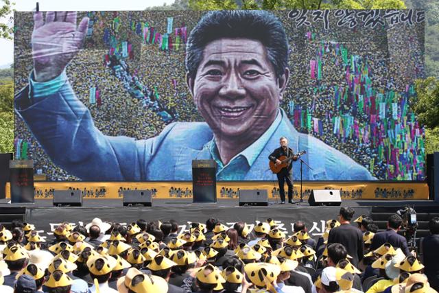 어느 날, 극우적 생각을 내보이며 부모를 걱정시키는 아이. 더 나아가 서울서부지법 폭력 난동에 참여한 10대들. 우리 아이들은 어떻게 자라고 있는 것인가. 한국일보는 10대들의 정치 인식을 분석하고 그 원인과 해법을 파고들었다.가수 정태춘이 경남 김해시 진영읍 본산리 봉하마을에서 열린 노무현 전 대통령 서거 10주기 추도식에서 추모공연하고 있다. 한국일보 자료사진 |