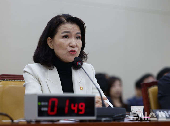 [서울=뉴시스] 김명년 기자 = 이진숙 방송통신위원장이 26일 오전 서울 여의도 국회 과학기술정보방송통신위원회 전체회의에서 박충권 국민의힘 의원 질의에 답하고 있다. 2025.08.26. kmn@newsis.com |
