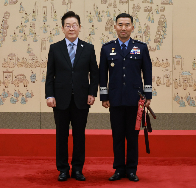 아시아투데이 목용재 기자 = 이재명 대통령은 2일 합동참모의장 내정자를 비롯한 대장 진급자들에게 삼정검 수치를 수여했다.