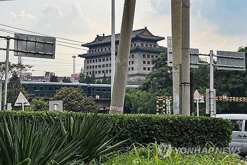 베이징역 인근 지나는 김정은 탑승 추정 전용열차 |