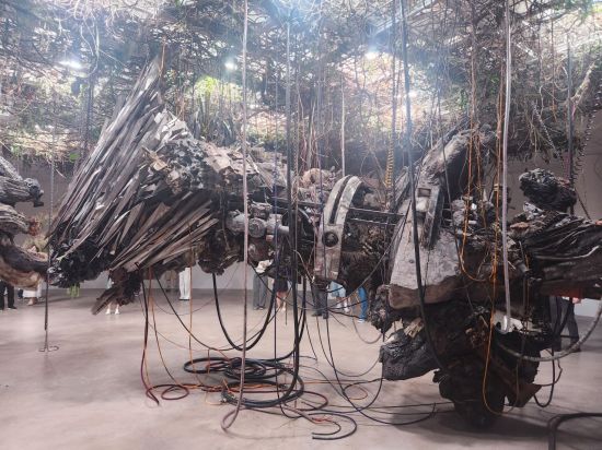 전시는 호라스가 2022년부터 이어온 연작 '상상의 종말'을 중심으로 전개한다. 먼 미래 유적지에서 온 듯한 기괴하고 혼종적인 조각이 낯설고 서늘한 기운을 풍긴다. 그 위층에 마련된 '타임 엔진'은 2023년 헬싱키비엔날레, 2024년 바젤바이엘러재단에서 소개한 기존작에 기반한다. 금속 콘크리트와 플라스틱, 흙, 유리, 수지, 소금, 나무껍질, 자동차 부품 등이 층층이 쌓인 복합체는 인간과 기계의 노동 흔적을 드러낸다. 시간 흐름에 따라 변화하는 생물 상태도 전시의 일부다. 천장에 거꾸로 달린 나무는 시간이 지남에 따라 점점 마르지만, 전시물에 드리워진 줄기 일부는 수분 공급 시스템에 의해 생장한다. 로하스는 "인간이 세계에 형식을 부여하는 것이 아니라, 세계가 스스로 작용해 현실을 만들고, 그 현실이 다시 물질을 창조해 낸다"고 부연했다.