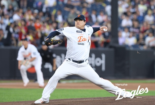 (서울=연합뉴스) 이동칠 기자 = 프로야구 한화 이글스의 토종 에이스 류현진(38)이 화끈하게 폭발한 타선의 도움을 받으며 일곱 번째 도전 만에 시즌 7승을 사냥했다.