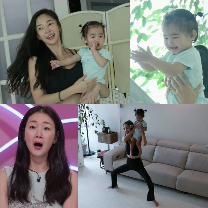 또한 김윤지는 딸을 어깨에 올린 채 흔들림 없이 운동을 이어간다. 이를 지켜보던 안영미는 “저게 돼요?”라며 김윤지의 홈트 루틴에 입을 다물지 못한다.