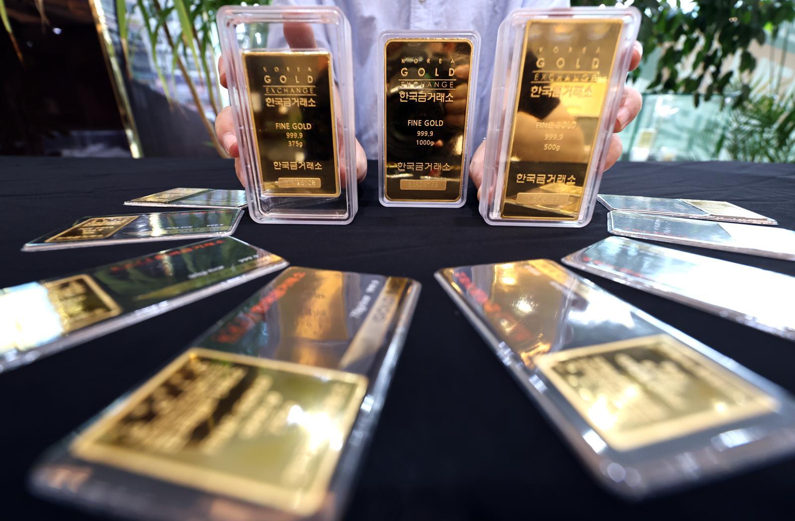 금과 은 가격이 급등세를 보이는 2일 서울 종로구 한국금거래소에서 관계자가 골드바를 내보이고 있다. 2025.9.2 뉴스1 |
