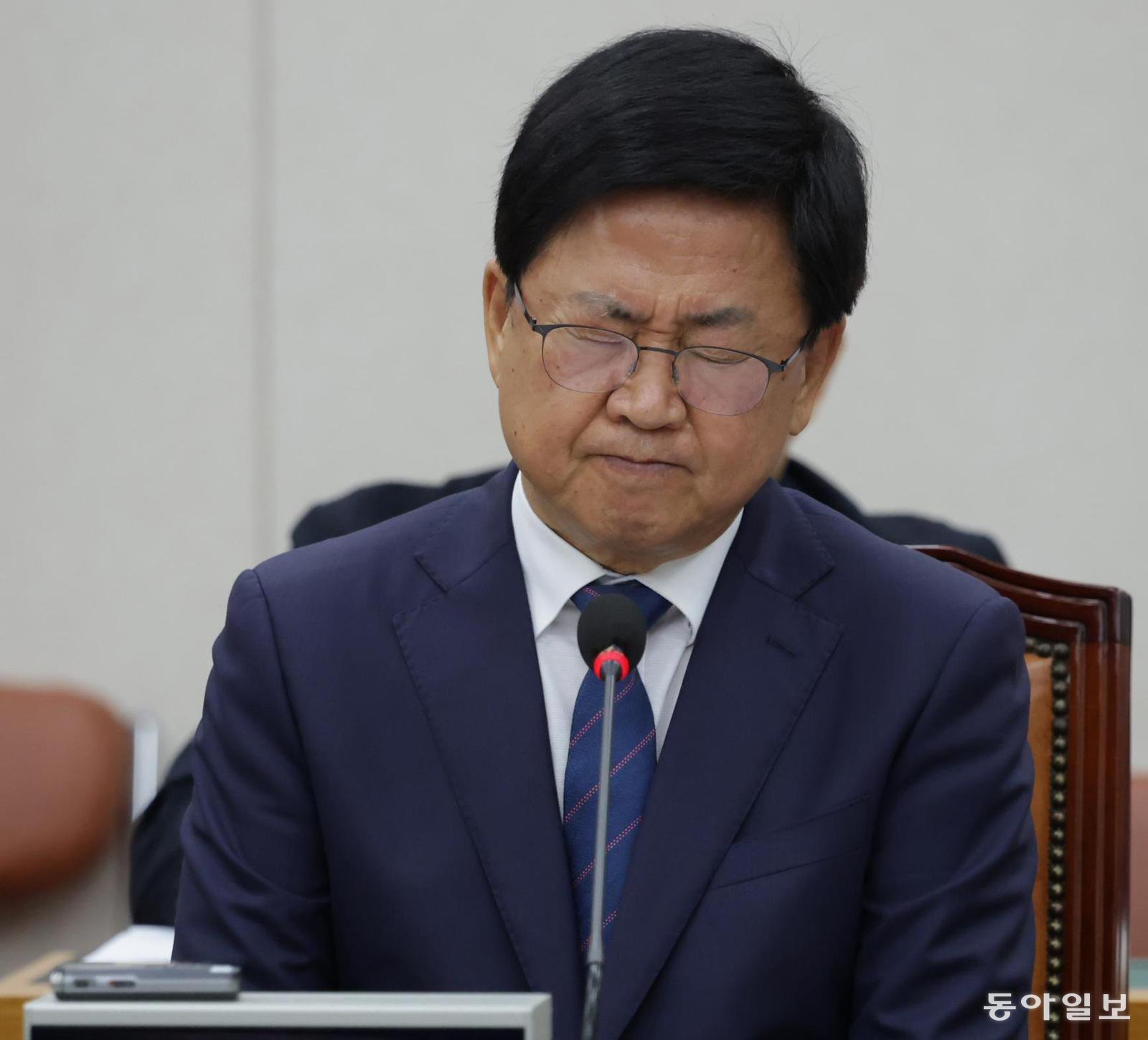 최교진 부총리 겸 교육부 장관 후보자가 2일 국회 교육위원회에서 열린 인사청문회에서 질의를 듣다가 눈을 질끈 감고 있다. 이날 최 후보자는 과거 소셜미디어에 천안함 폭침 사건 음모론을 담은 다큐멘터리 기사를 공유한 것에 대해 “상처를 받으신 분이 계신다면 사과드린다”며 고개를 숙였고, 음주운전 이력에 대해서도 거듭 사과했다. 박형기 기자 oneshot@donga.com |
