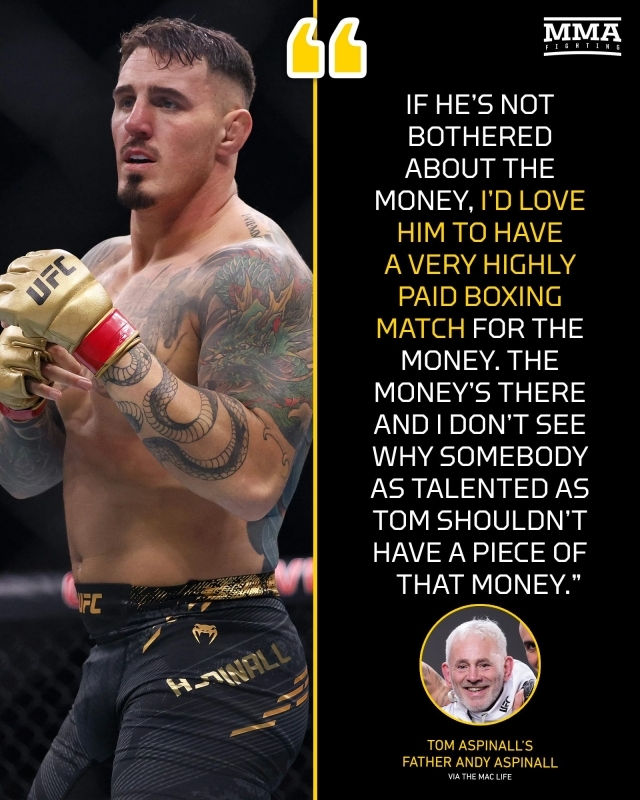 앤디 아스피날은 최근 톰 아스피날의 유튜브에 출연, 충격적인 이야기를 전했다. 자신의 아들이 ‘빅 머니’를 벌 수 있다면 복싱 매치도 하기를 바란다고 주장한 것이다.