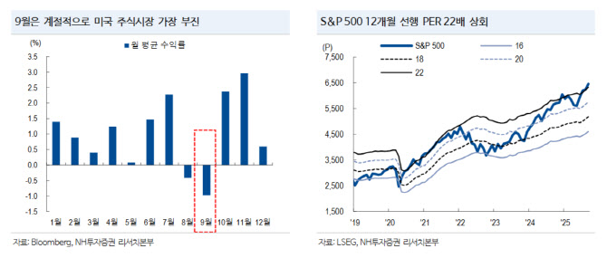조 연구원은 “미국 주식시장은 이미 12개월 선행 PER 22배를 상회하면서 밸류에이션 부담이 존재했던 상황”이라며 “9월은 계절적으로 수익률이 낮은 시기로 이번 조정은 자연스러운 차익 실현의 일환”이라고 말했다. 이번 조정이 미국 주식시장의 상승 추세를 훼손하는 변곡점이라고 보기는 어렵다는 설명이다.