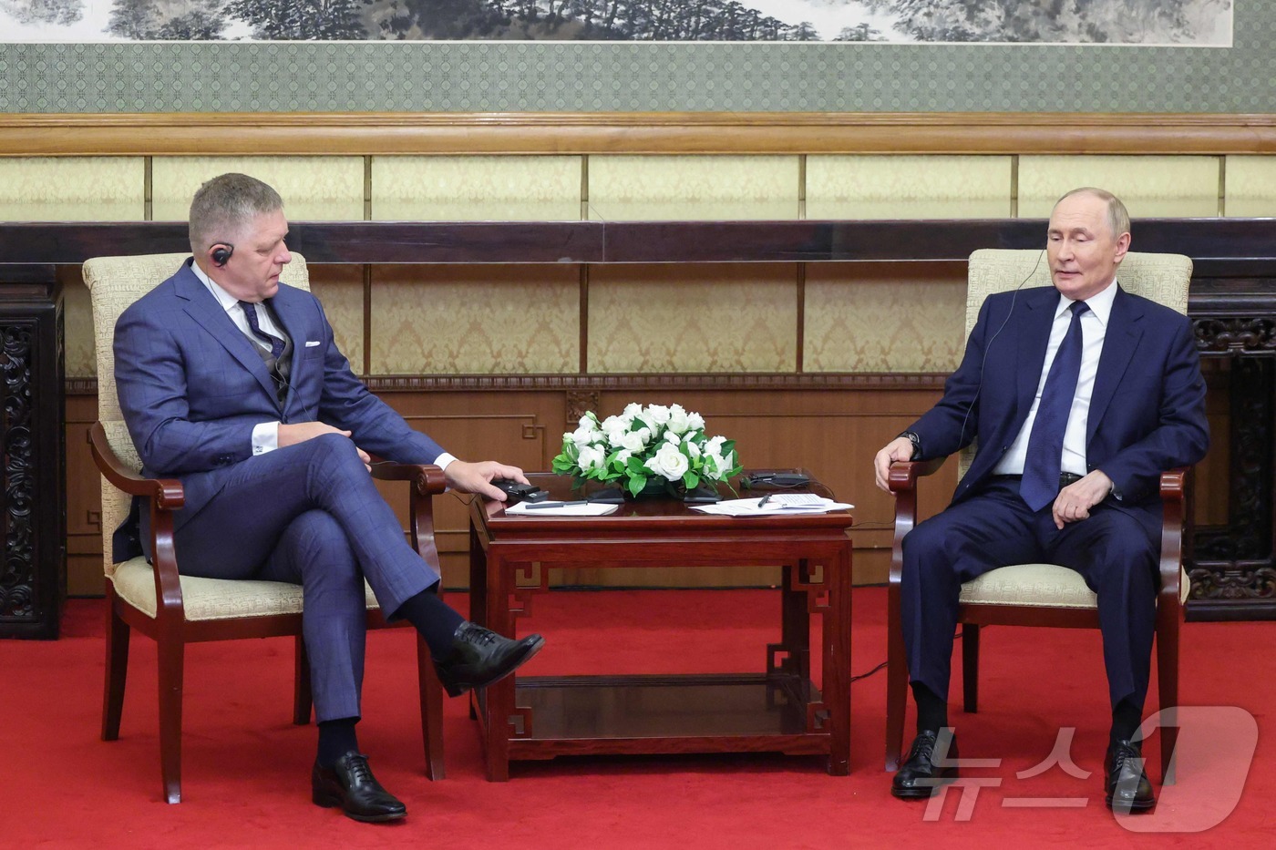 블라디미르 푸틴 러시아 대통령(오른쪽)이 2일 베이징의 댜오위타이 국빈관에서 로베르트 피초 슬로바키아 총리와 회담하고 있다.2025.09.02. ⓒ AFP=뉴스1 |