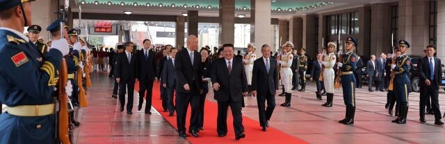 김정은 북한 조선노동당 총비서 겸 국무위원장이 “2일 오후 중국인민항일전쟁 및 세계반파쇼전쟁승리 80돌 기념행사에 참석하시기 위하여 전용열차로 베이징에 도착하셨다”라고 3일 노동신문이 보도했다.