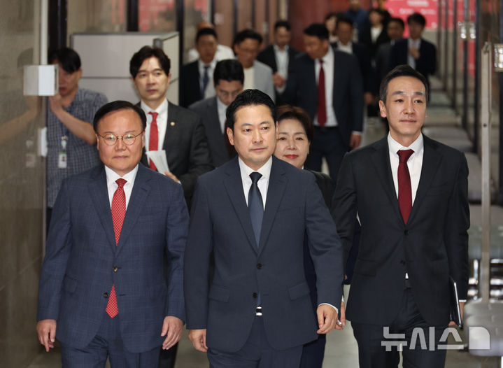 [서울=뉴시스] 이승재 하지현 한은진 기자 = 국민의힘은 3일 당 소속 의원들과 원내대표실, 원내행정국을 향한 특검의 대대적인 압수수색을 비판하면서 이를 '정치깡패 저질 폭력', '모리배식 내란몰이' 등으로 규정하고 총공세를 폈다.