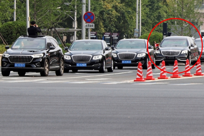 2일 김정은 북한 국무위원장이 탑승한 것으로 추정되는 차량 행렬이 중국 베이징역을 출발하고 있다. /사진=뉴스1(로이터) |
