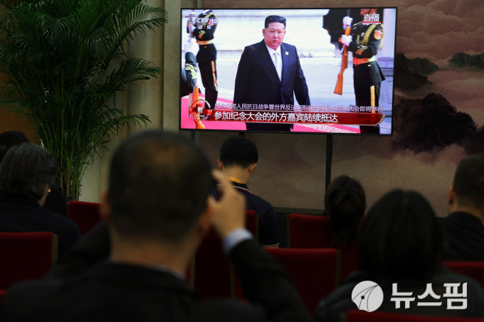 9월 3일 중국 베이징에서 열린 제2차 세계대전 종전 80주년 기념 군사 퍼레이드에 참석하기 위해 도착한 김정은 북한 국무위원장의 모습이 언론 관계자 대기실에 비춰지고 있다. [사진=로이터 뉴스핌] 2025.09.03 kwonjiun@newspim.com |