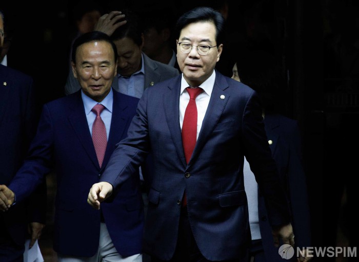 [서울=뉴스핌] 윤창빈 기자 = 송언석 국민의힘 원내대표가 3일 오전 서울 여의도 국회에서 열린 의원총회에 참석하고 있다. 2025.09.03 pangbin@newspim.com |