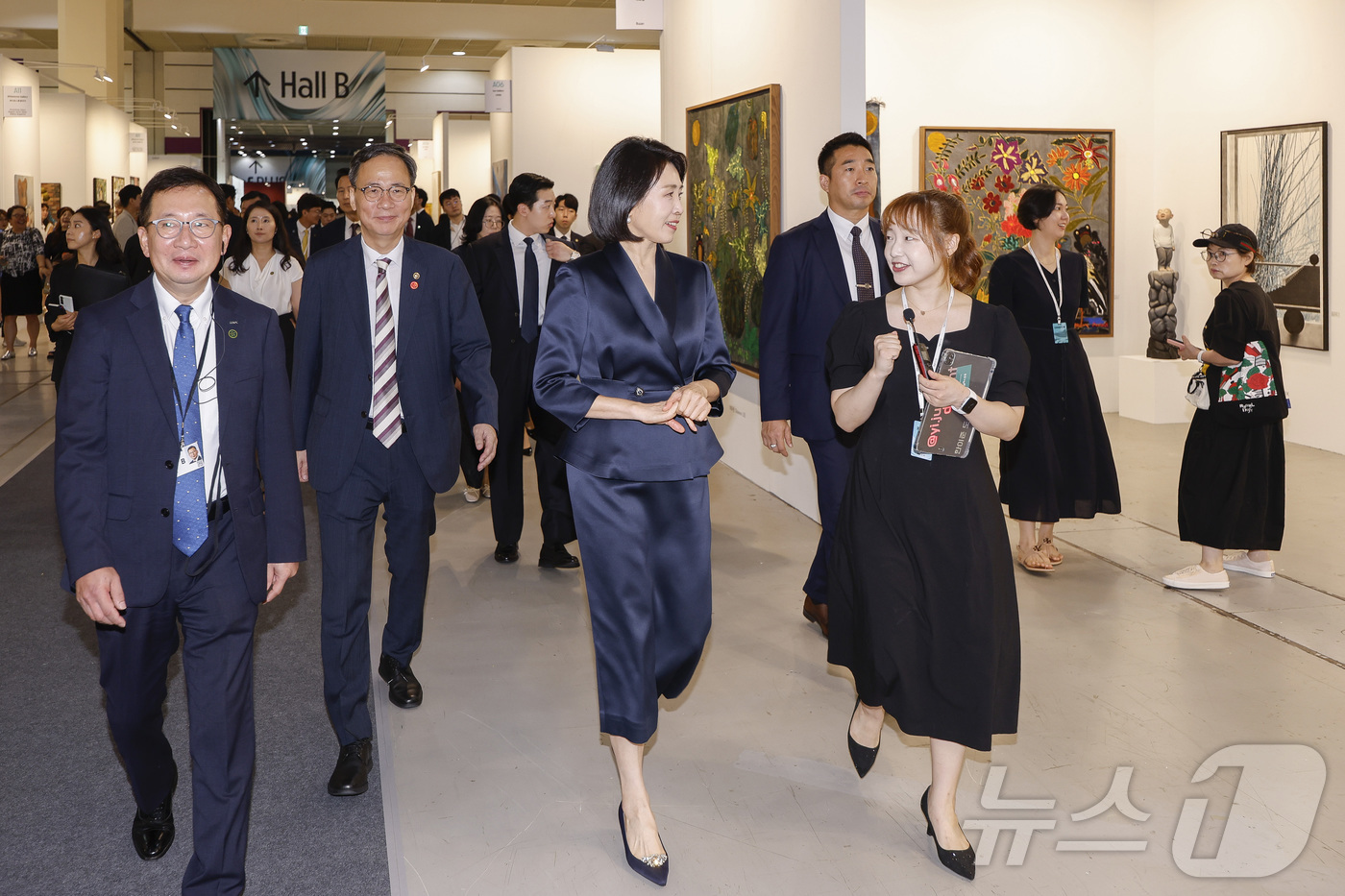 (서울=뉴스1) 김성진 기자 = 이재명 대통령의 부인 김혜경 여사가 3일 서울 강남구 코엑스에서 열린 '키아프 서울 2025' VIP 프리뷰 데이를 찾아 작품들을 관람하고 있다. (공동취재) 2025.9.3/뉴스1