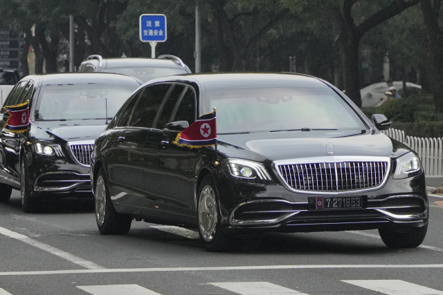김정은 북한 국무위원장이 중국 전승절 80주년 기념행사에 참석하기 위해 2일 오후(현지시간) 베이징에 도착한 가운데, 김 위원장이 탄 벤츠 마이바흐 차량 앞쪽에 부착된 ‘7·271953’ 번호판이 주목을 끌었다.