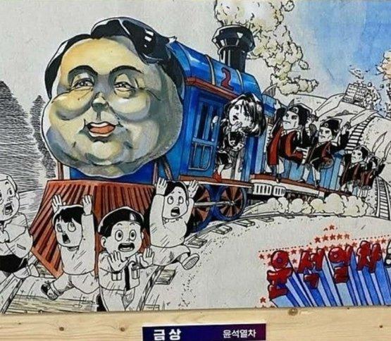 2022년 윤석열 전 대통령 부부 풍자로 논란을 빚었던 '윤석열차' 만평이 다시 전시된다.