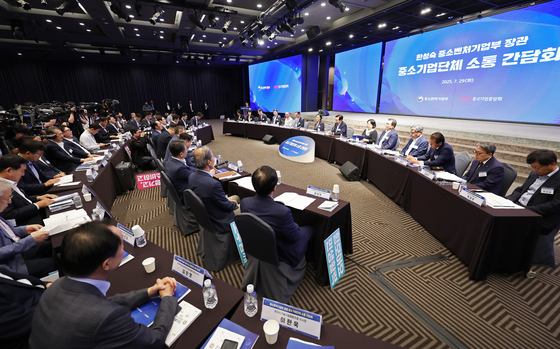 한성숙 중소기업벤처기업부 장관이 지난 7월 서울 여의도 중소기업중앙회에서 열린 중소기업단체 소통 간담회에서 발언하고 있다. 뉴스1 |