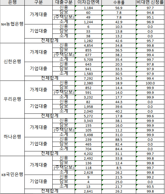 신한, 이자감면액 1위…KB, 수용건수·수용률 증가