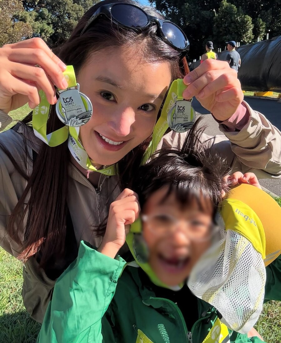 이시영은 2일 개인 계정을 통해 아들과 함께 시드니 마라톤에 참가한 인증샷을 공개했다.