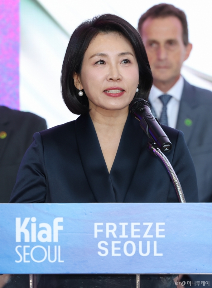 김혜경 여사가 아시아 최대 미술축제로 꼽히는 '키아프·프리즈 서울 2025' 개막행사에 참석해 "세계적인 갤러리와 재능있는 작가들이 한 데 모여 빚어내는 예술의 향연이 서울을 더욱 활기차고 매력적인 도시로 만들어 줄 것"이라고 밝혔다.
