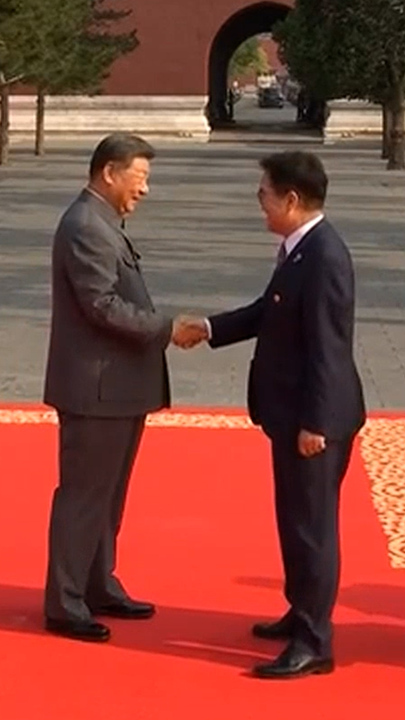 우원식 국회의장이 3일(현지시간) 중국 베이징에서 열린 전승절 기념행사에서 북한 김정은 국무위원장과 만나 수인사(악수)를 나눴다고 국회의장실이 이날 밝혔다.